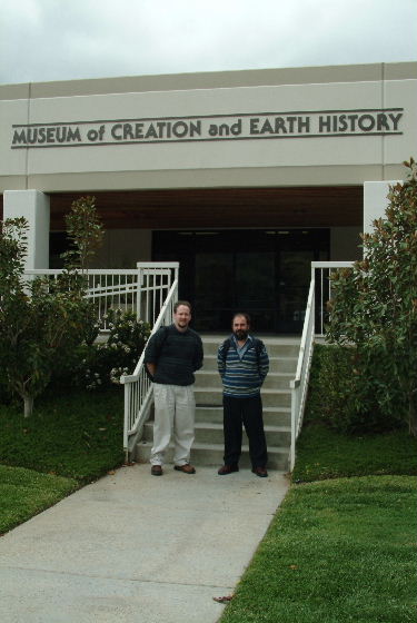 Ian and Stephen pause in front of the imposing facade of the Institute for Creation Research “Museum of Creation and Earth History”.