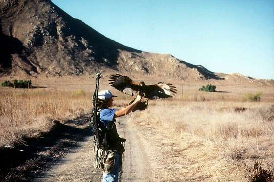 Here Pablo, a male Harris’s hawk, returns to Diane. We were at the San Jacinto Wildlife Area trying to find some pheasant. We saw some during the day, but I don’t recall either Pablo or Rusty connecting, though they had some flights to pheasant.