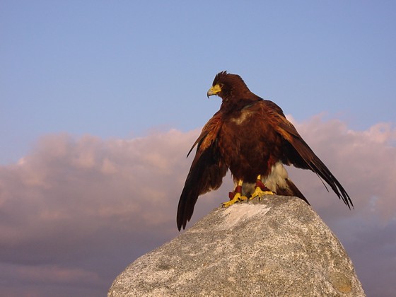 This is one of my favorite pictures of Rusty, our female Harris’s hawk. This was taken in Santee, California, shortly after Rusty had tried to catch a duck, and gotten wet in the process.