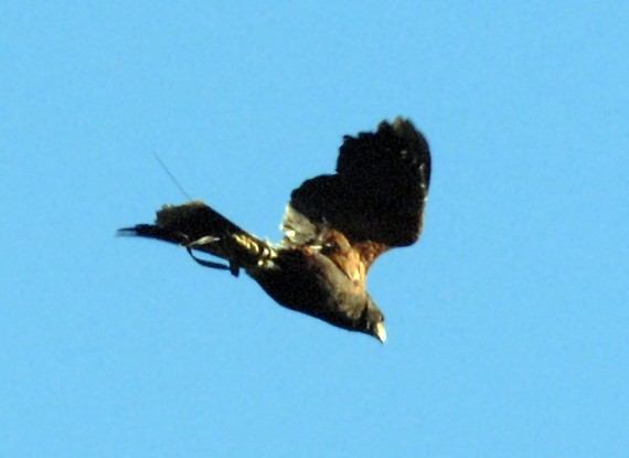 This week, the picture shows Rusty on her way to try to catch something she has spotted. The way she flies is noticeably different when she thinks she is chasing something from when she is just heading to a new perch.