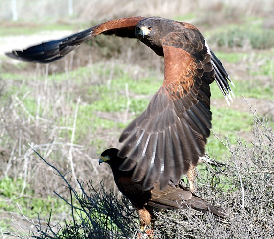 Here’s a picture from the end of the year in 2002. We had Rusty out in the field with the two new hawks, Beater and Biter, who we had trapped in mid-November.