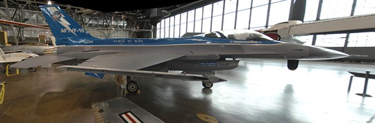 Here is a reconstruction of a rectilinear view of an AFTI F-16 where all the images had to be taken from within four feet or so of the wingtip.