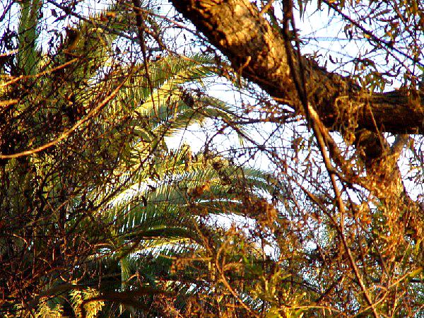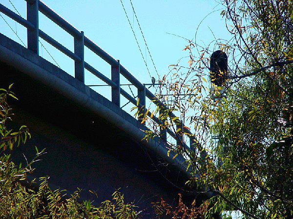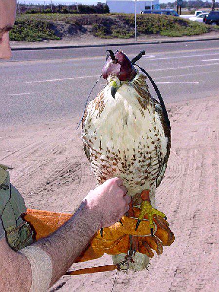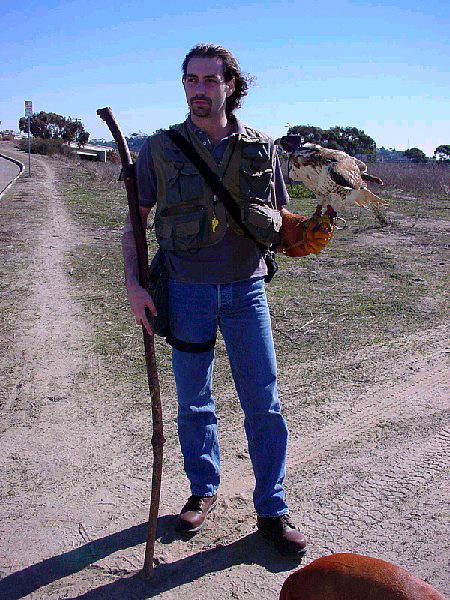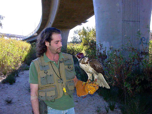 Whisper is a red-tailed hawk flown by a friend of ours. We went out one day to take our birds after rabbit, but once Whisper was loose, she decided it was a great day for soaring and touring parts of the San Diego River bottom. We spent the next day and a half tracking Whisper around. The pictures below show some of the places where we spotted Whisper during that time. We would get Whisper in sight, then she would move. We would pull out the telemetry again, get into her vicinity, and tried to visually locate here. In some places this was easy, and in others it was quite difficult. In the end, Whisper was back with us (last picture), so all's well...
